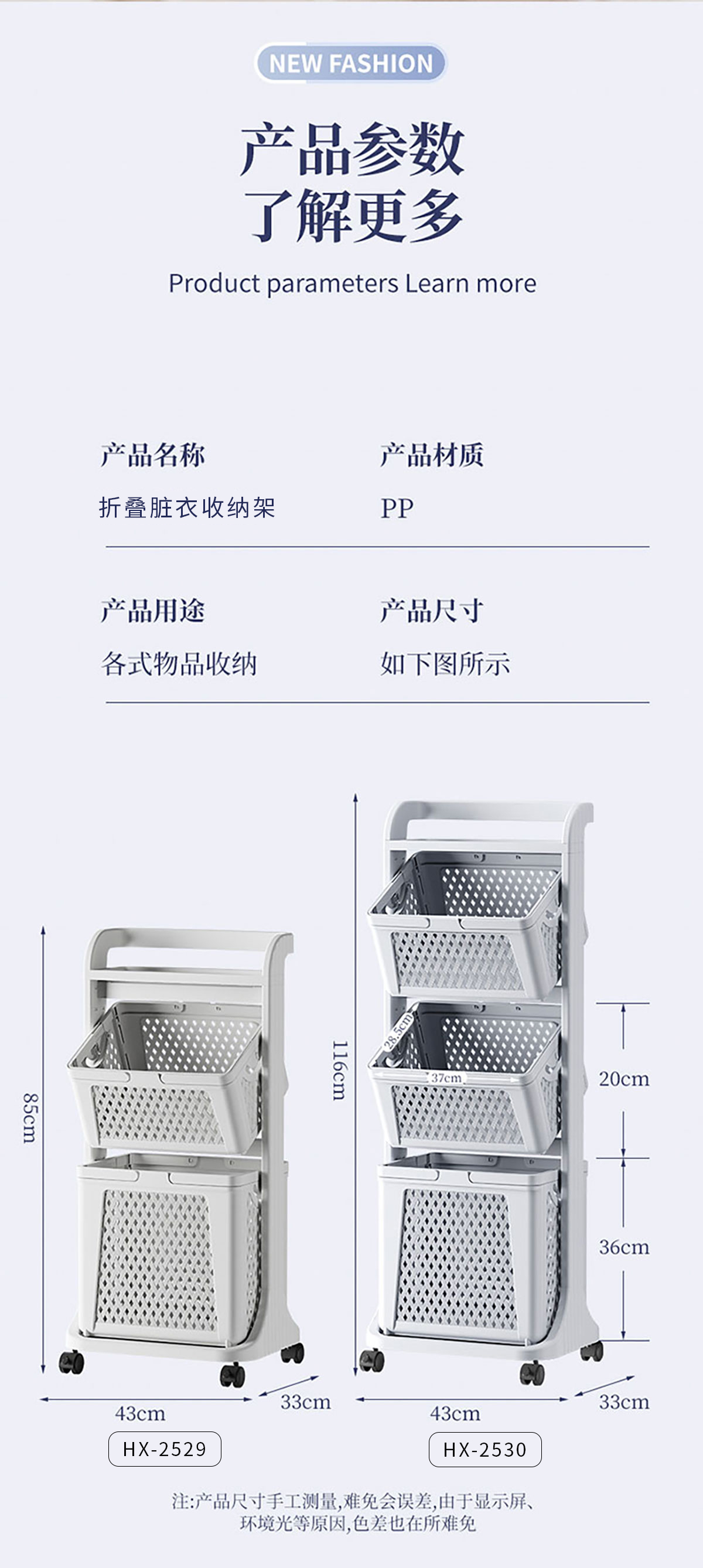 Size: HX-2529(二層):430*330*850mm HX-2530(三層):430*330*1160mm
