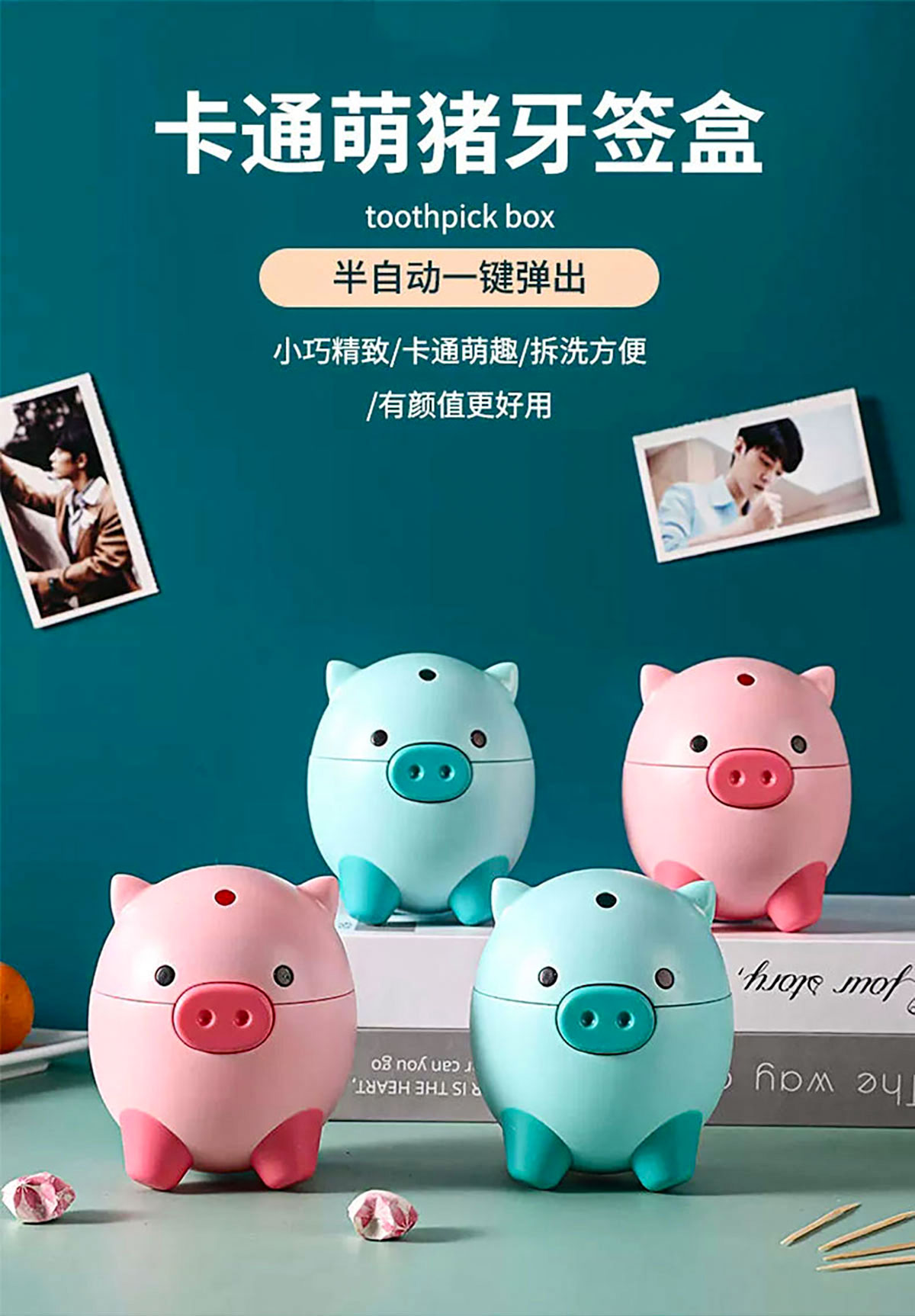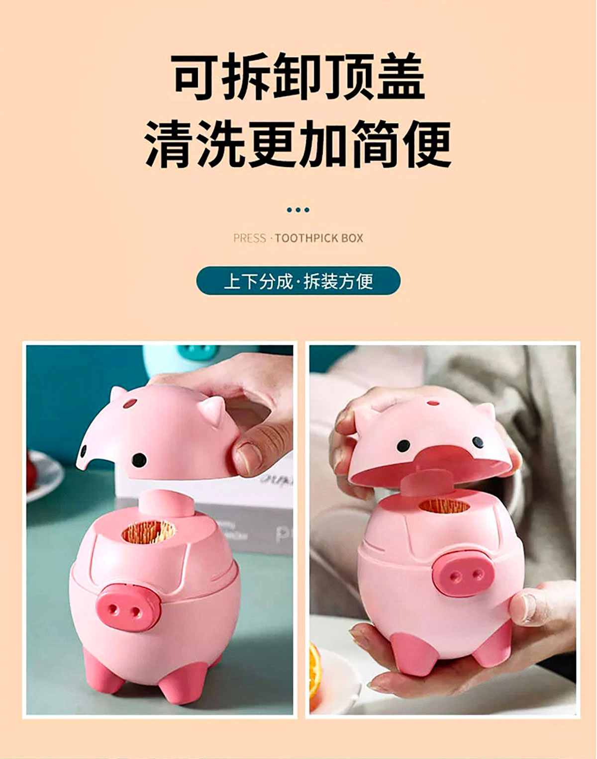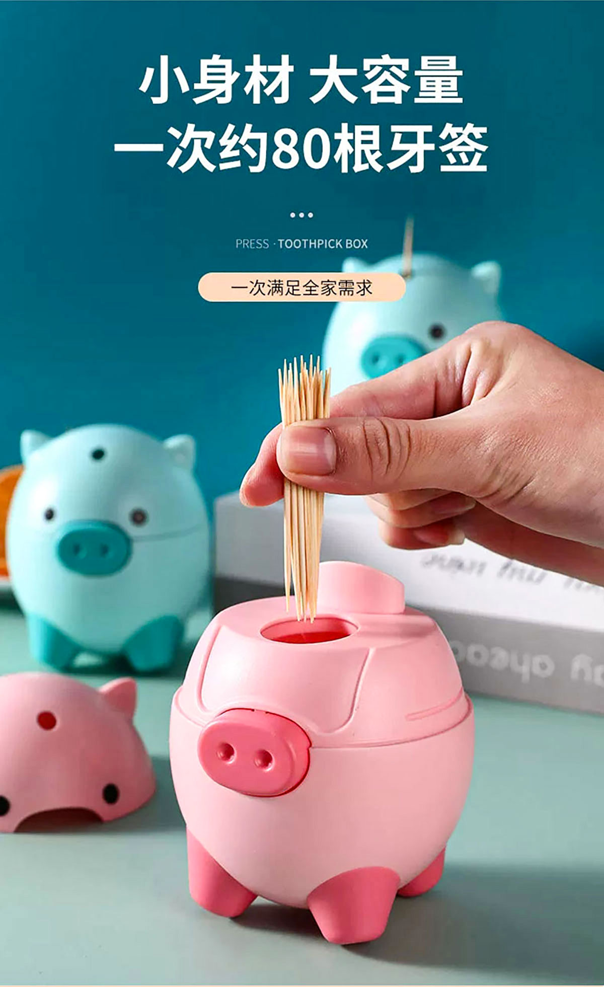 卡通萌豬自動牙簽瓶