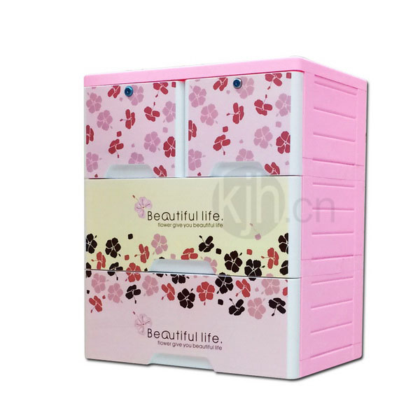 三層整理柜-帶鎖(富貴色彩花)