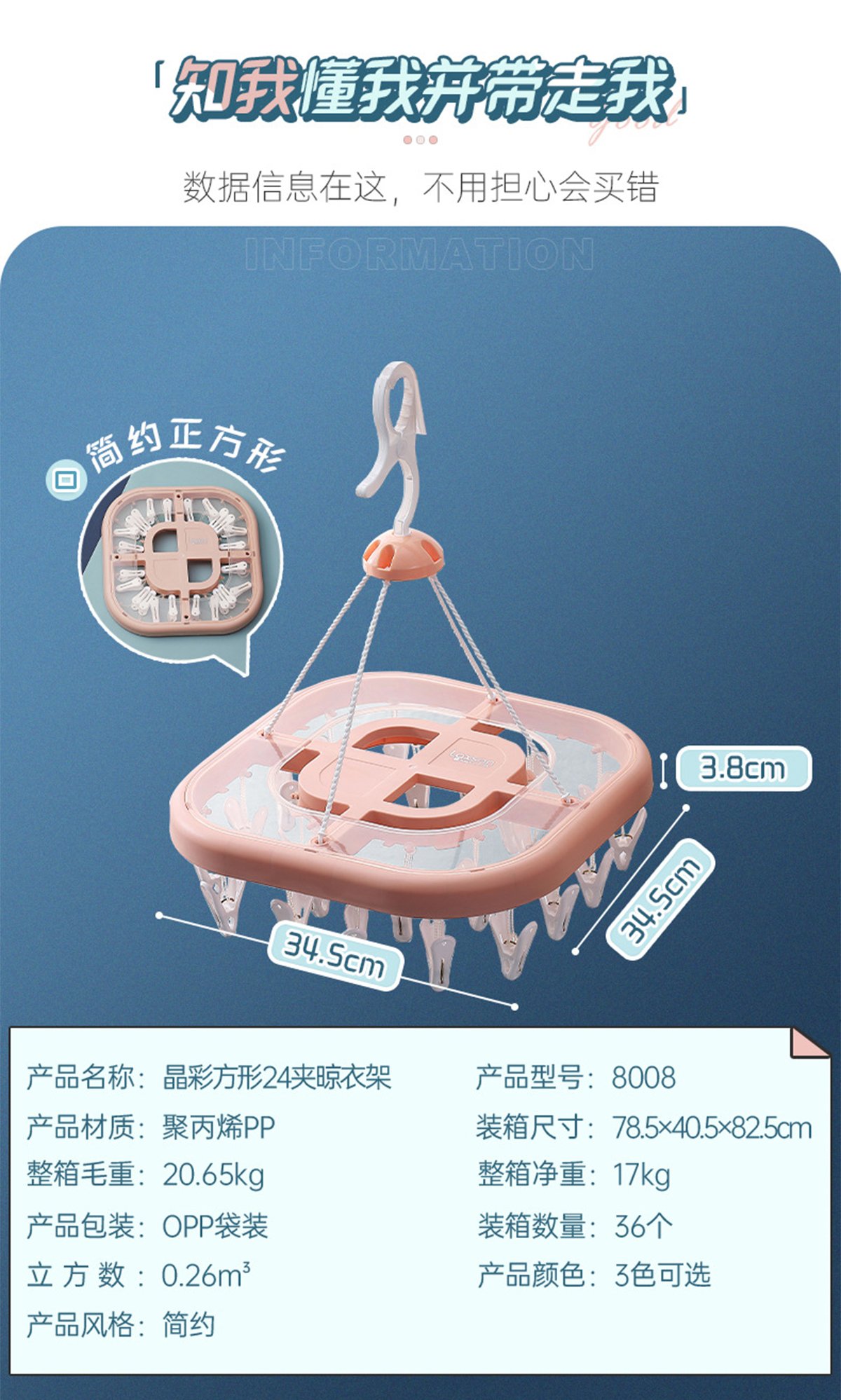 晶彩方形24夾晾衣架 2023年新色