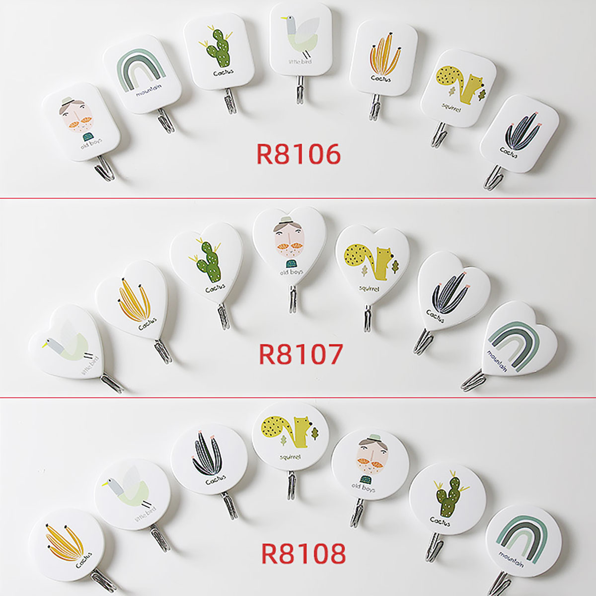 Remarks:白色底,共七個圖案隨機搭配包裝,共三個型號:長方形,心形,圓形