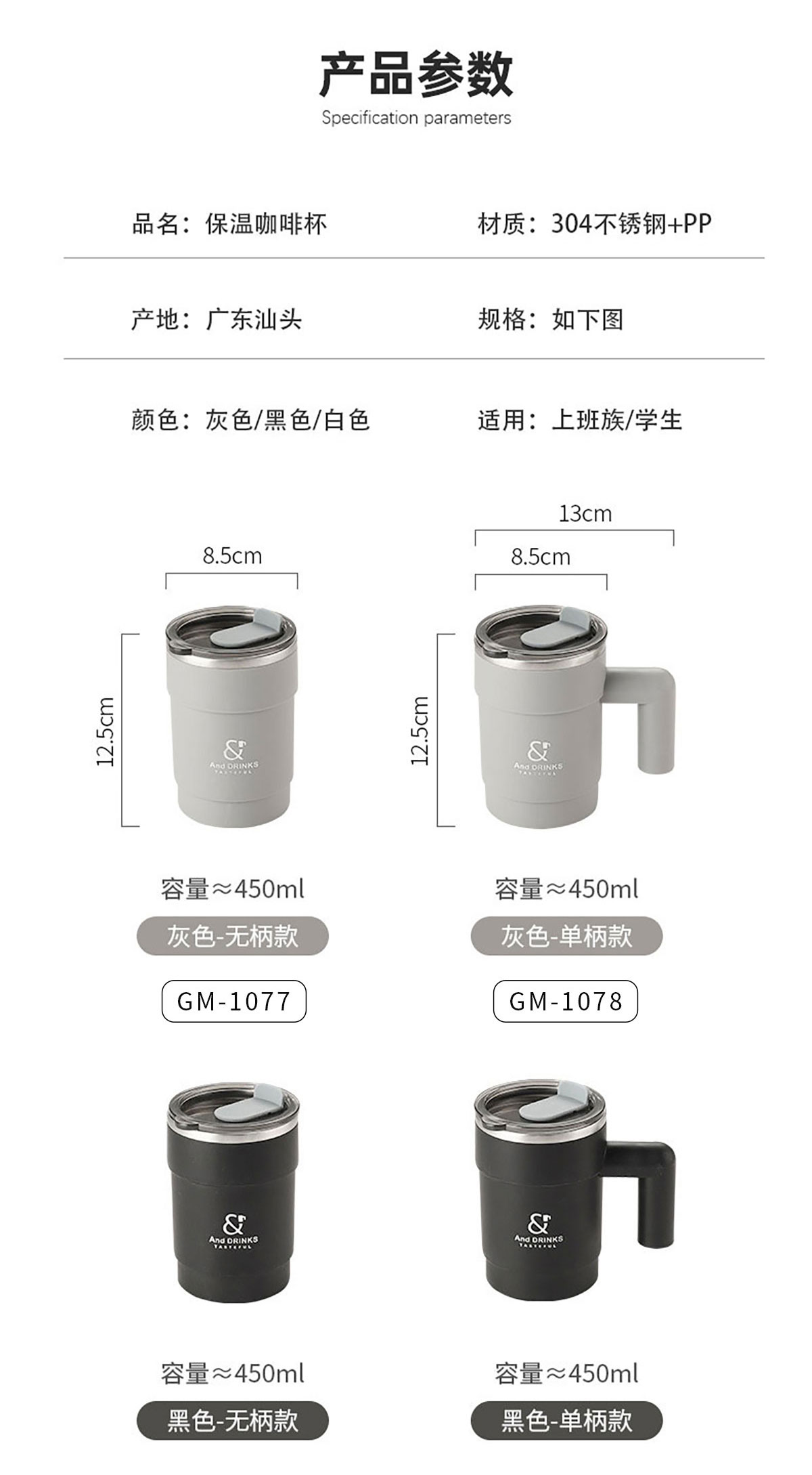 Size: GM-1077():155*85mm/450ml