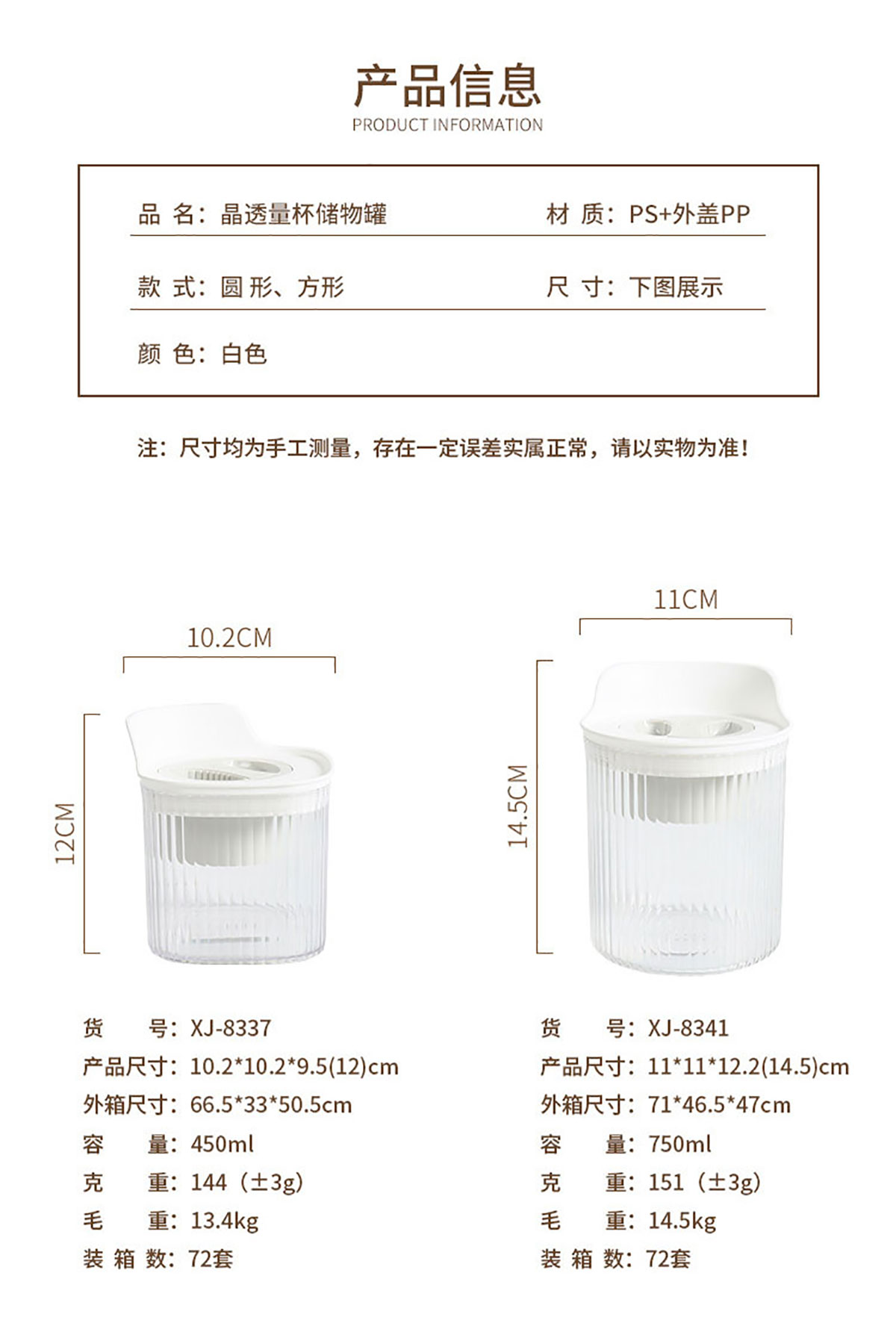 Size: HH-XJ8337(方形):102*102*95mm/450ml