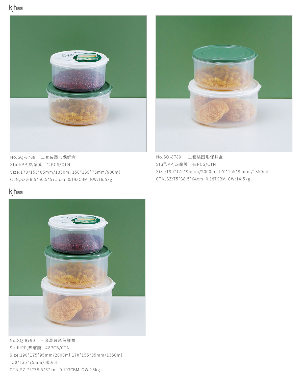 SQ-8790:190*175*95mm/2000ml 170*155*85mm/1350ml 150*135*75mm/900ml