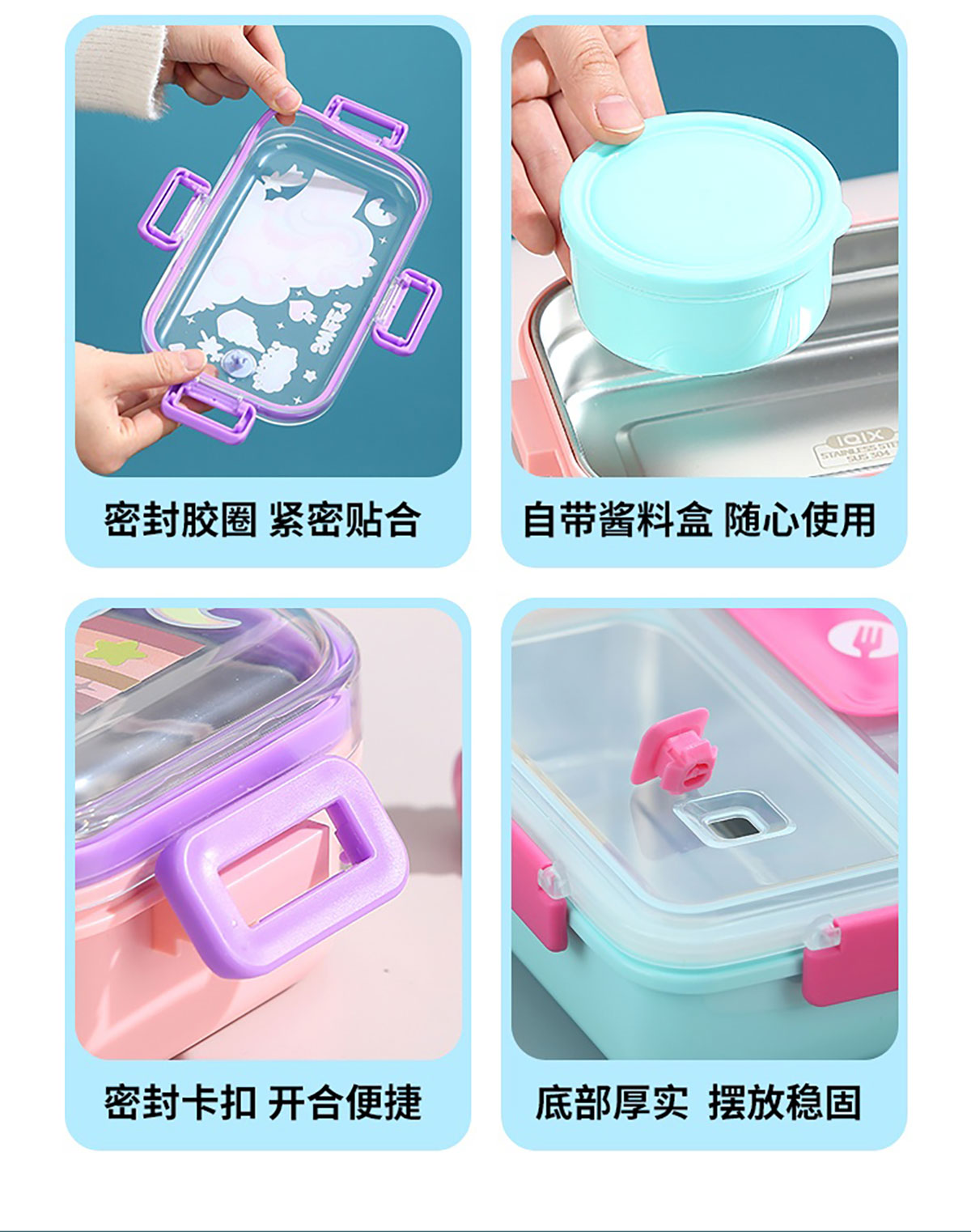 700ml童趣密封不銹鋼餐盒(單格+PP碗150ml/2格+沙拉碗80ml/2格+不銹鋼碗100ml)