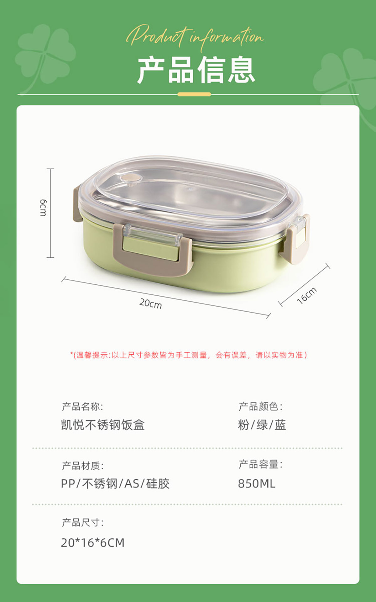 Size: 850ml,200*160*60mm,