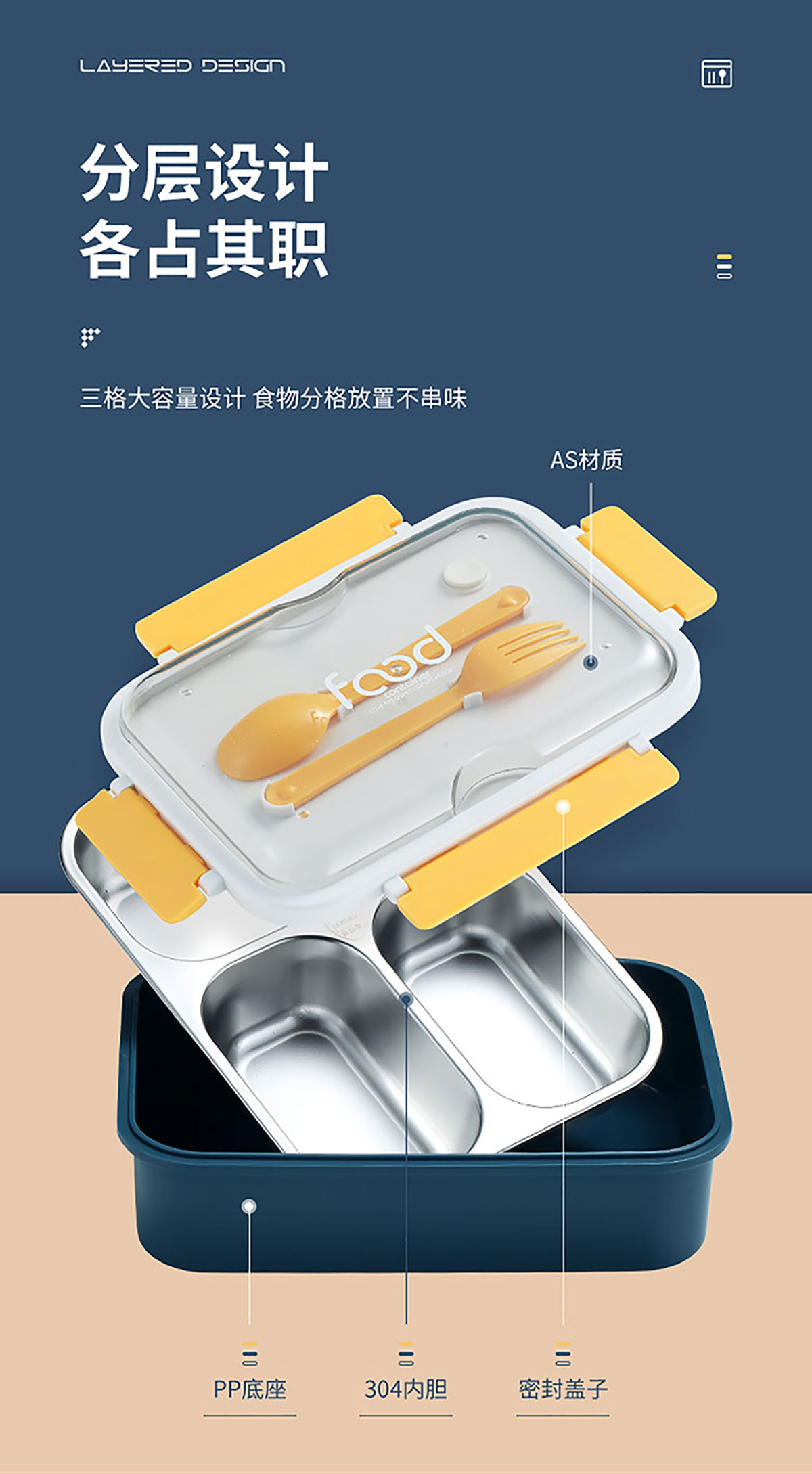 不銹鋼雙格800ml/三格750ml不串味