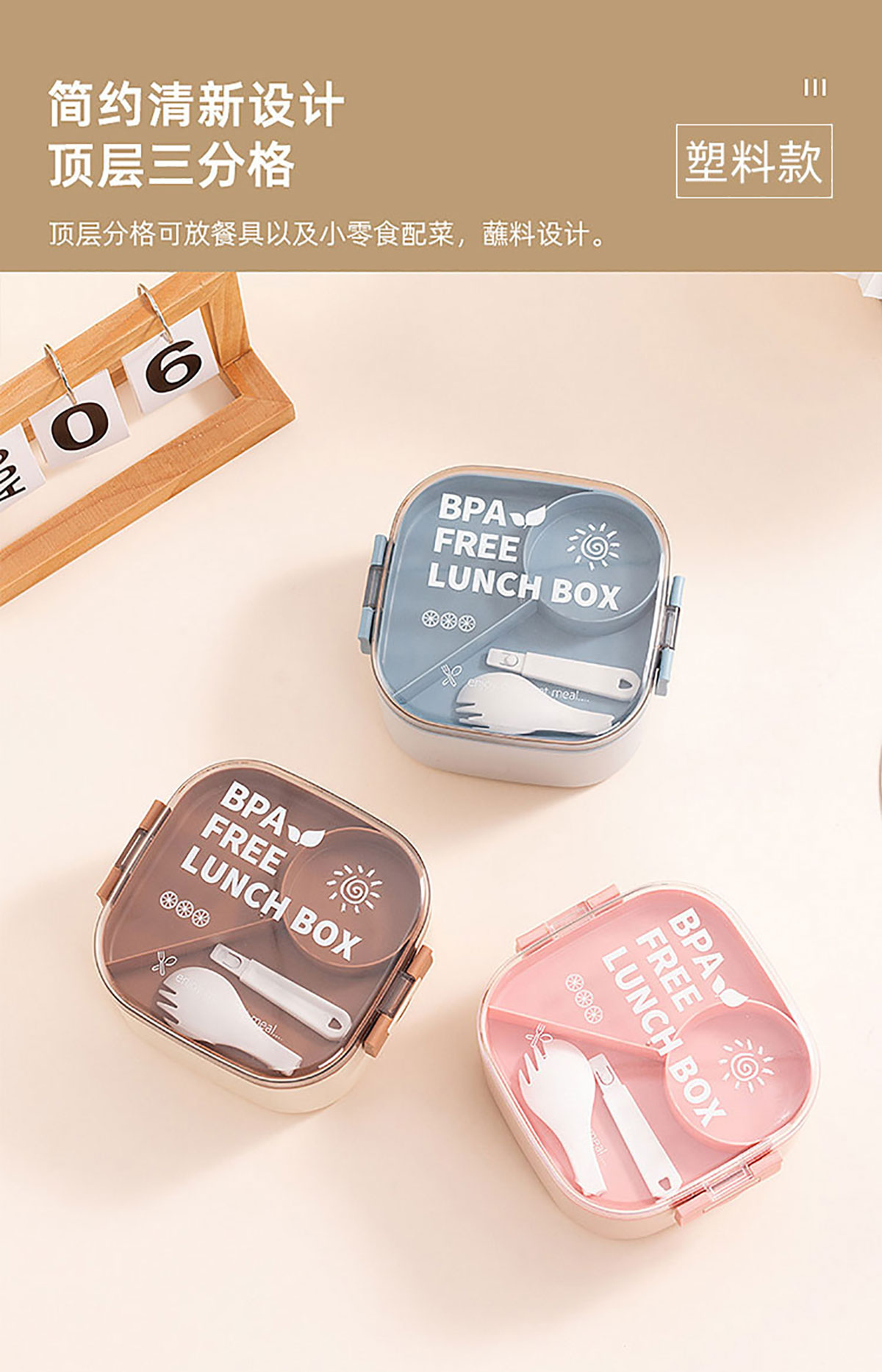 方形沙拉飯盒(帶沙拉盒/塑料款)