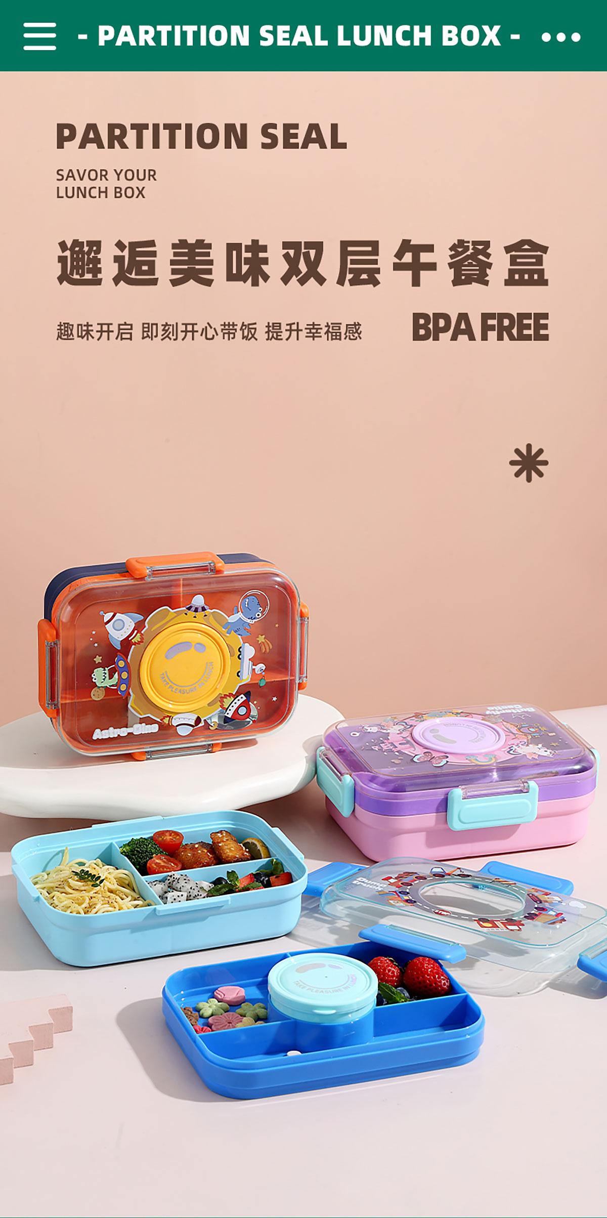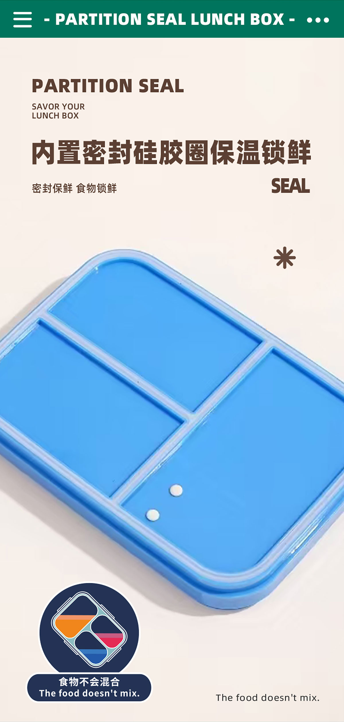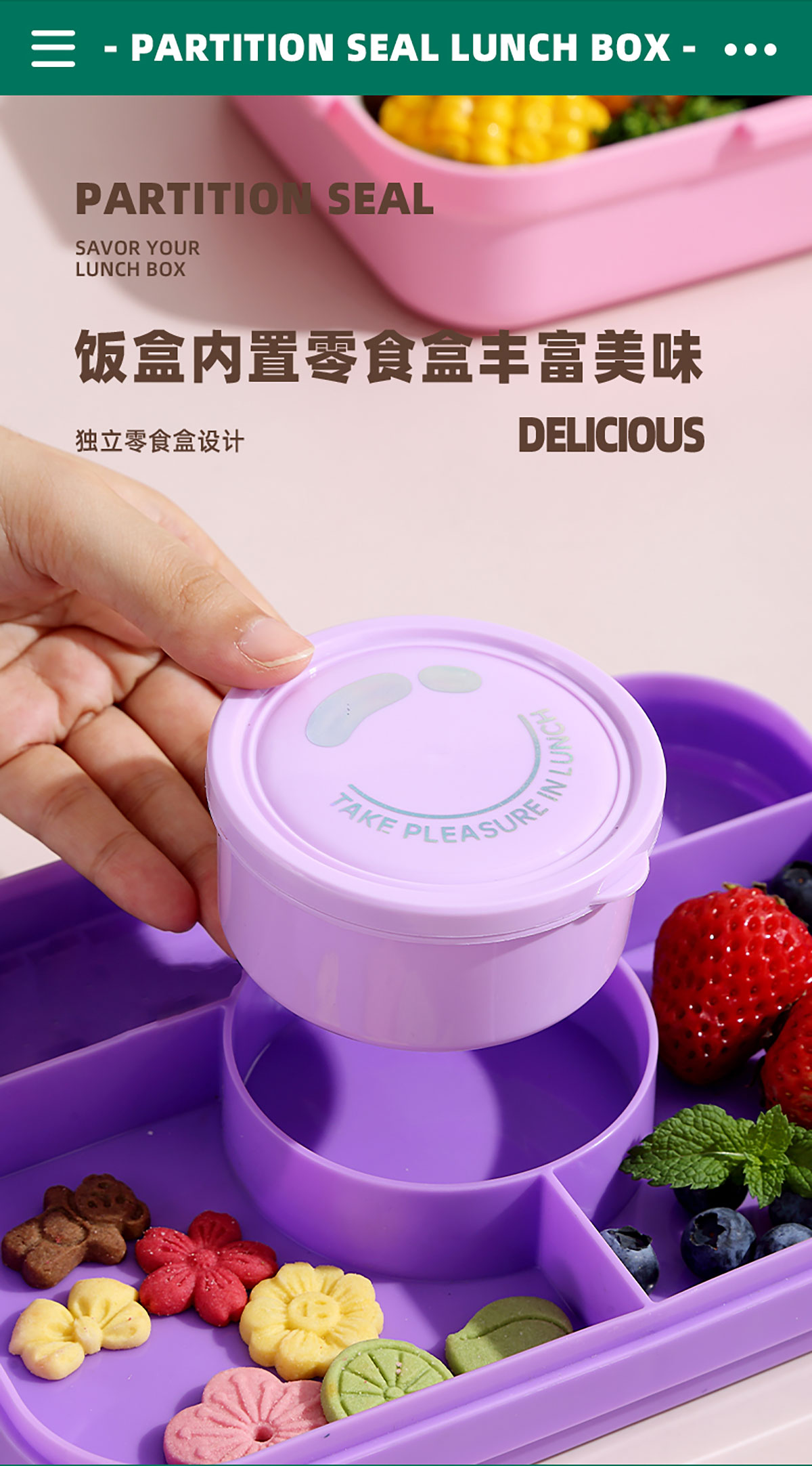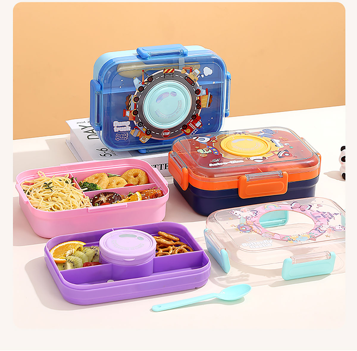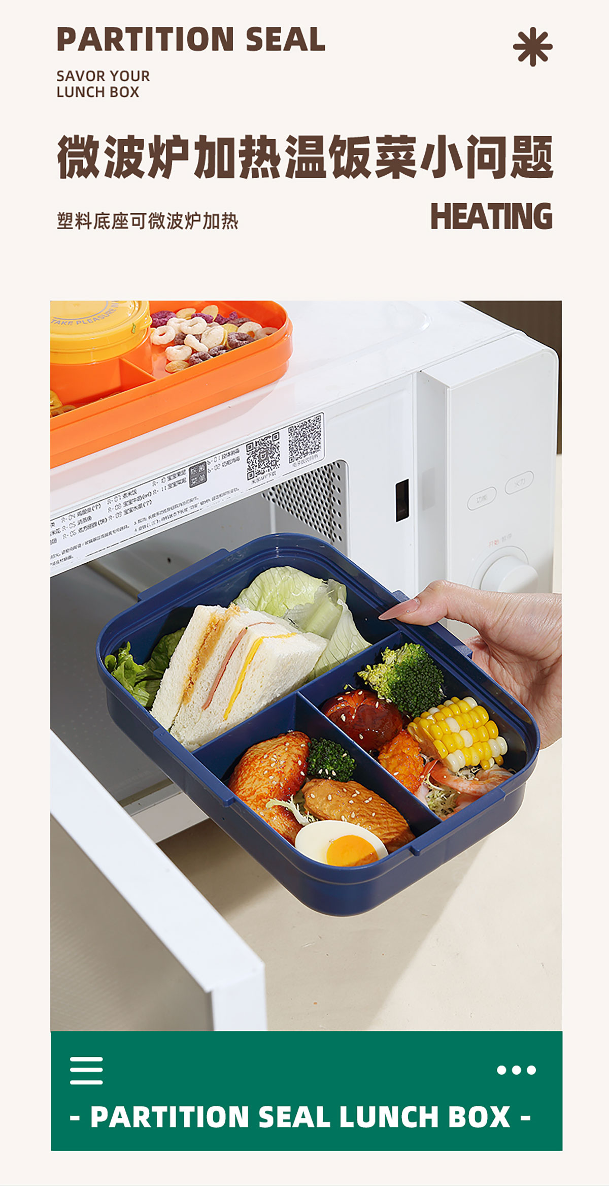 相機(jī)不串味餐盒(長方形塑料三格1270ml+碗150ml+PP勺)