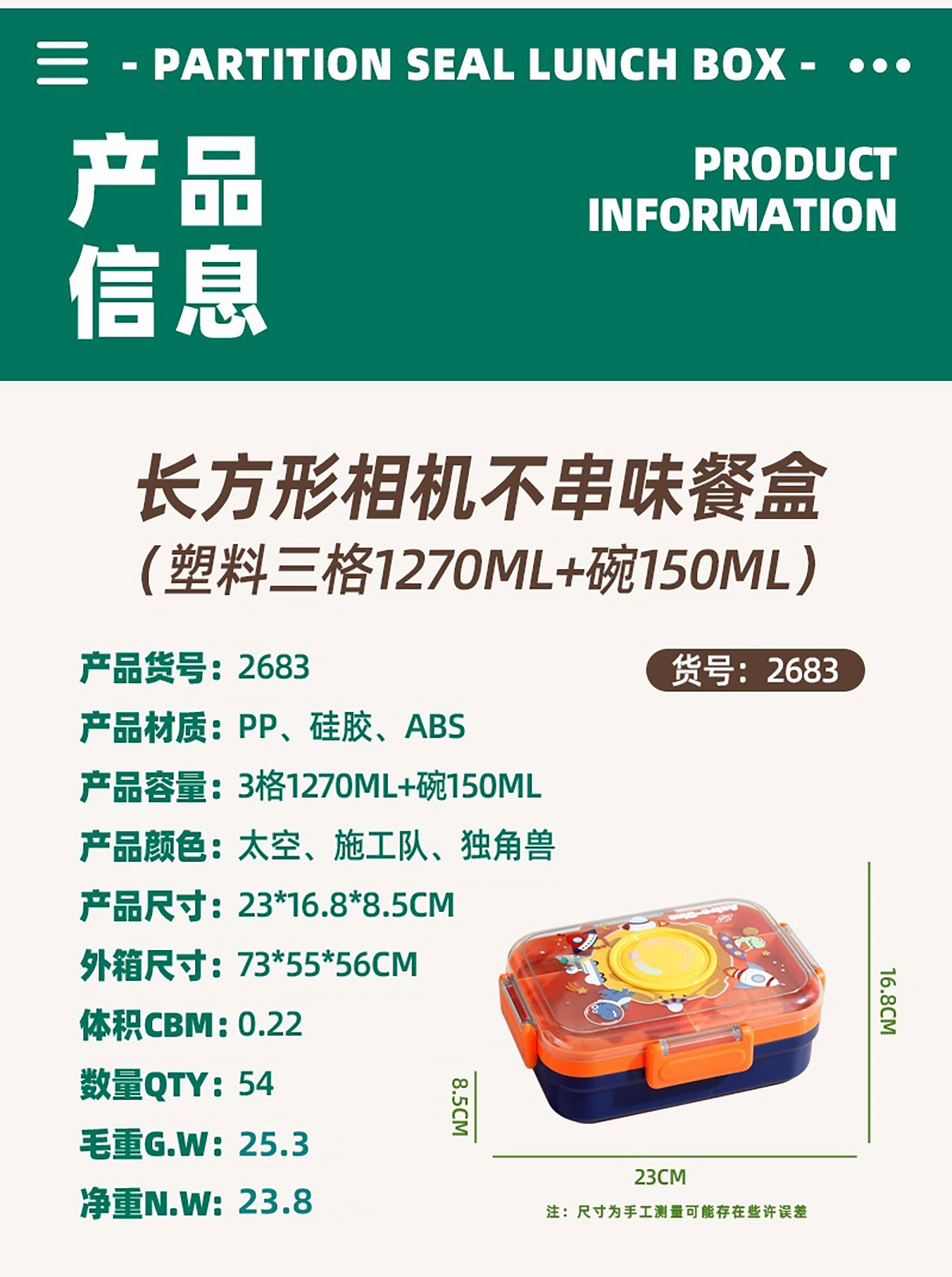 Size: 230*168*85mm/1270ml+碗150ml