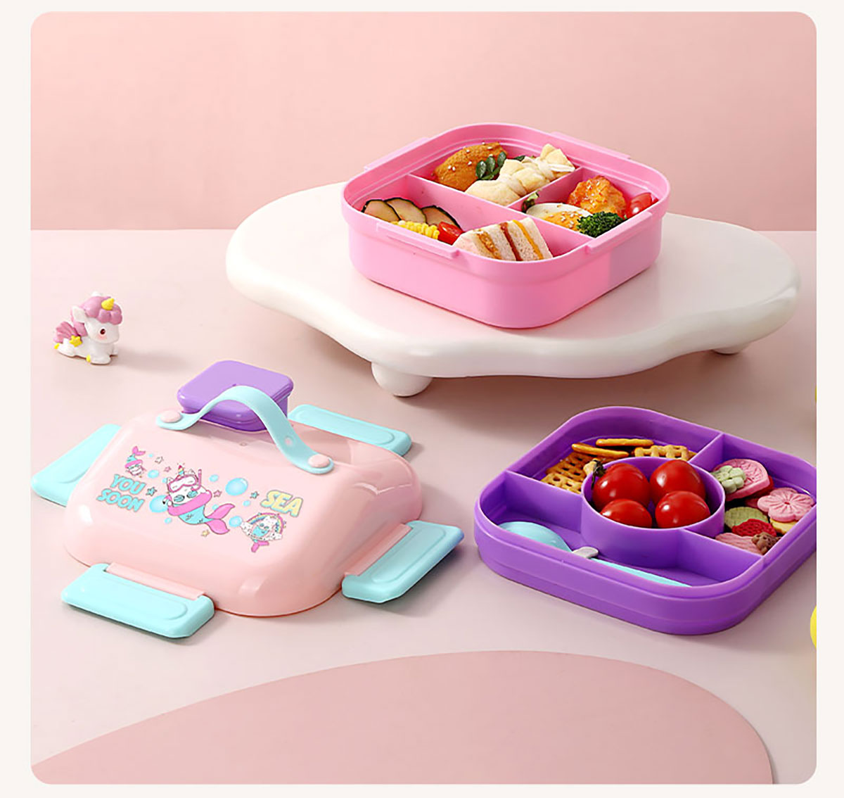 HOUSE房子不串味餐盒(方形塑料3格1100ml+碗70ml+PP勺)