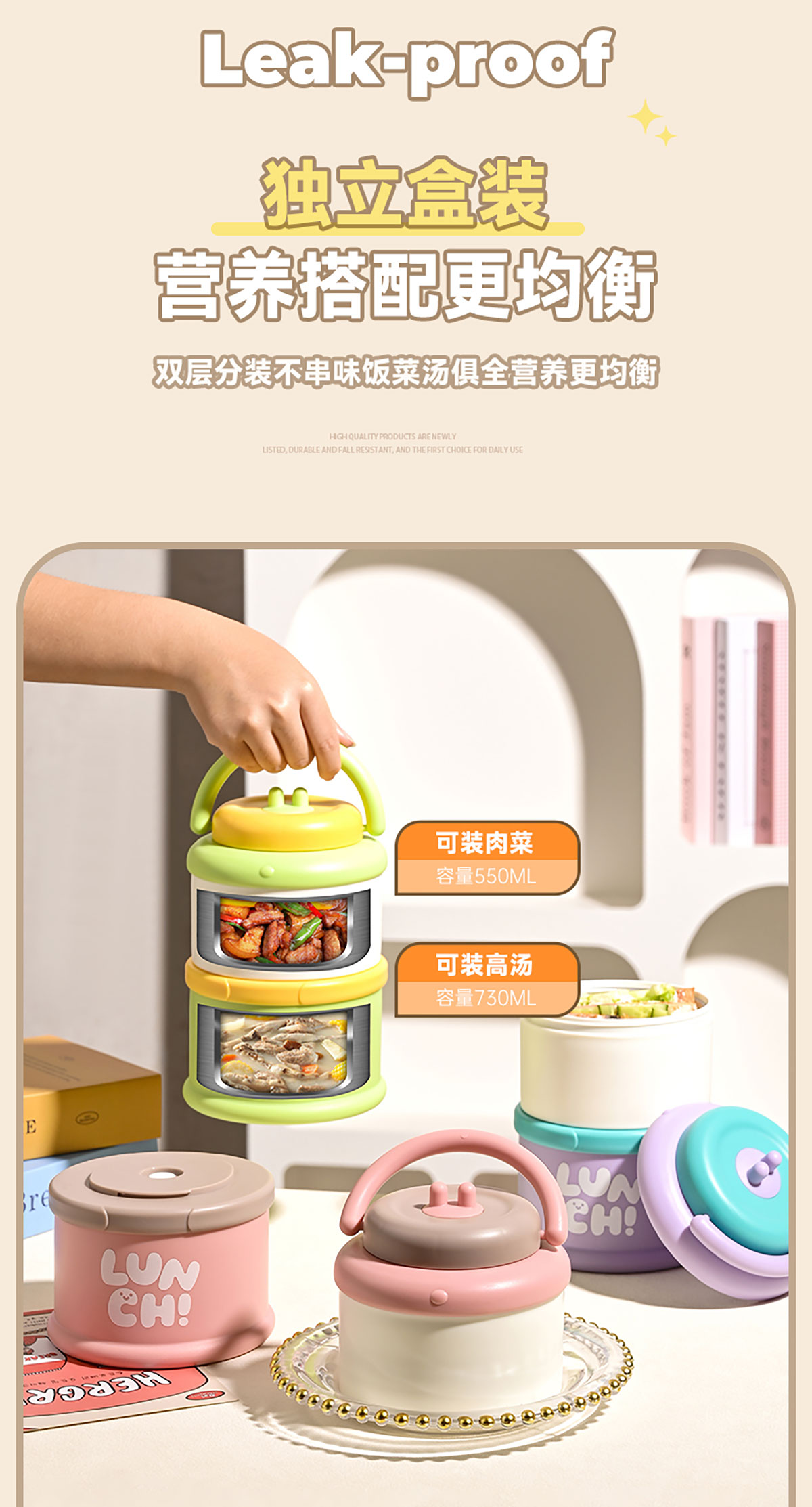 多層便當(dāng)盒730+550=1280ml