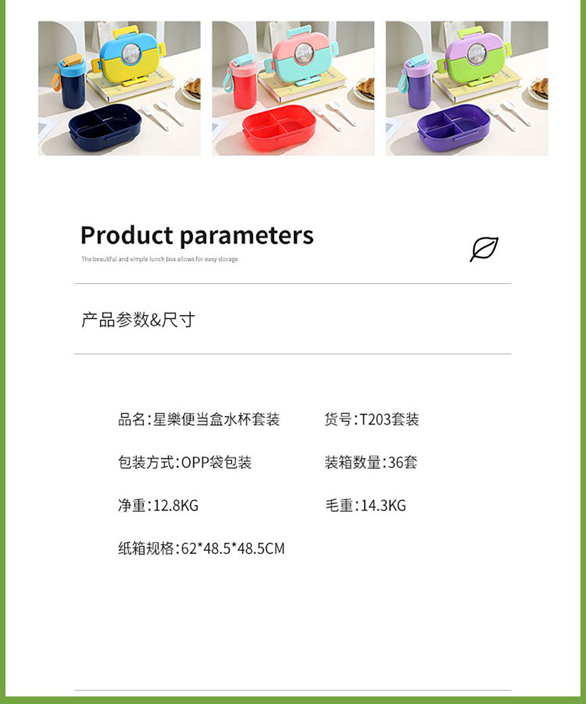 SWY-T203(套裝款):飯盒:215*149*72mm/1000ml 水壺:直徑82*高161mm/480ml