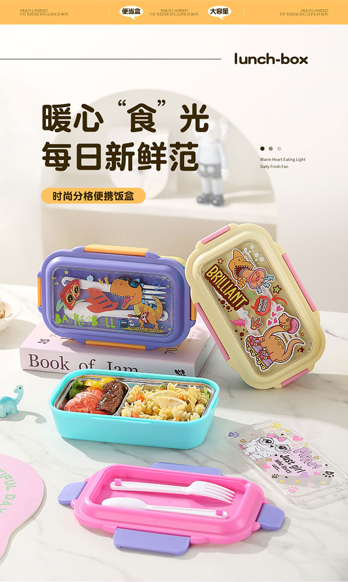 星樂卡通便當(dāng)盒PP款二格/不銹鋼款一格/二格